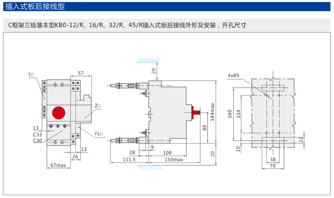 以KB0作為主開關(guān),與插入式導(dǎo)柱及底座組合,構(gòu)成插入式控制與保護開關(guān)電器。